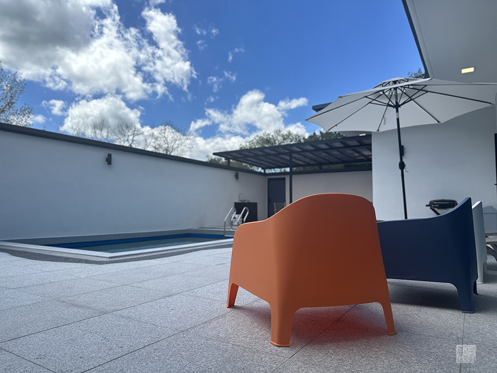 밝은 톤으로 되어 있는 거실과 소파는 밀양까지 찾은 여행의 피로를 풀기에 딱 안성맞춤이다. 하지만 풀빌라를 찾은 이유는 단순히 에어컨을 틀고 소파에 앉아 TV를 보는 게 아니라 집에서는 즐길 수 없는 물놀이를 즐기는 것에 목적이 있다. 밀양 풀빌라M은 거실에서 곧바로 수영장으로 나가서 차가운 물에 몸을 담글 수 있다.
