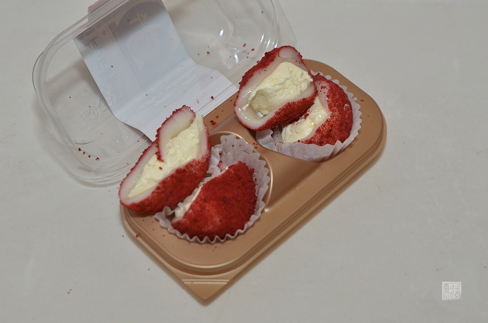 명색의 애플 크림떡이다 보니 사과향이 있는 크림이 풍부하게 잘 들어가 있고, 떡도 쫀득쫀득해서 평소 떡을 좋아하는 사람들이라면 맛있게 먹을 수 있다고 생각한다. 단, 쫀득쫀득하기 때문에 잘 씹지 않으면 목이 메는 정도가 아니라 실수로 꿀꺽 삼켜 버릴 위험이 있어서 어린아이에게 주려고 한다면 최소 4등분을 하는 걸 추천하고 싶다.