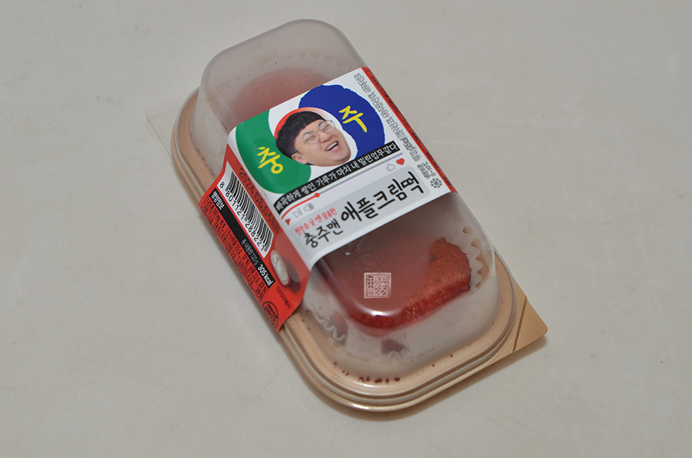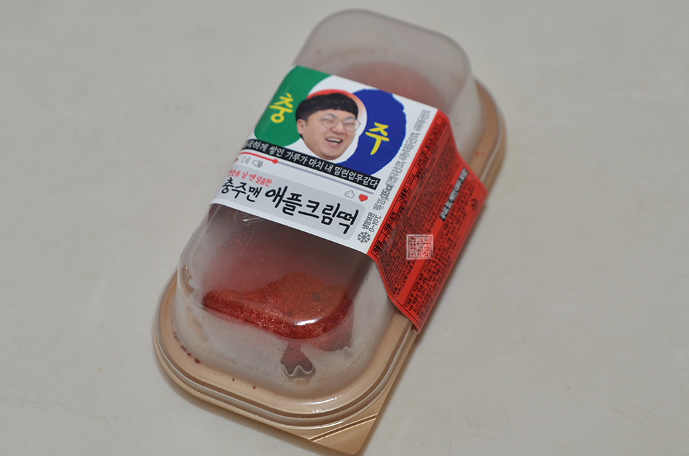 GS25 편의점을 통해 지난 7월 말부터 판매되고 있는 GS25X충주맨 콜라보 두 번째 상품인 충주맨 애플 크림떡을 구매해 보았다. 이 애플 크림떡은 이름에서 볼 수 있듯이 사과 크림이 들어가 있는 떡으로, 빵을 좋아하는 사람들이 아니라 떡을 좋아하는 사람들을 겨냥해서 판매하는 듯한 제품이라는 인상을 강하게 받을 수 있었다.