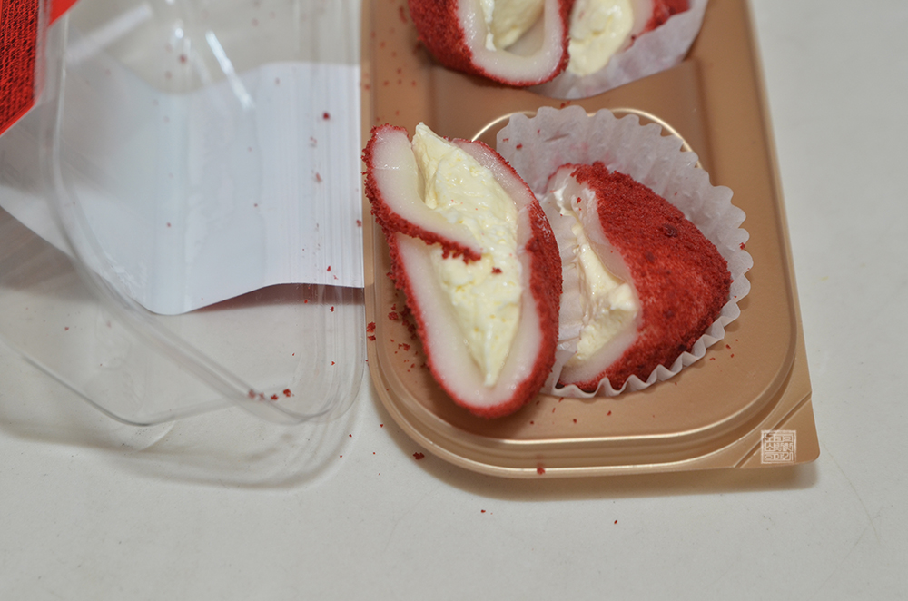 비닐 커버를 벗긴 충주맨 애플 크림떡의 모습은 위와 같다. 나는 충주맨 애플 크림떡을 블로그에 소개하기 위한 사진을 찍기 전에 숏츠로 충주맨 애플 크림떡을 소개하기 위해서 하나를 더 구매해서 먹어 보았는데, 이건 떡 하나를 그냥 먹으면 살짝 목이 메기 때문에 위 사진에서 볼 수 있듯이 잘라서 먹는 걸 추천하고 싶다.