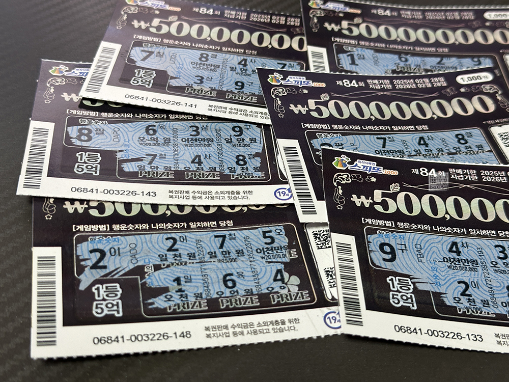 그렇게 다시 긁어 본 스피또1000 제84회 16장 중에서 6장이 당첨이 되었는데, 이번에는 3등 1만 원과 4등 5천 원도 없이 모두 5등 1천 원만 6장이 당첨되었다. 이번 주 4장을 구매해서 시작한 스피또1000 제84회 즉석 복권이 16장으로 늘어났다가 다시 6장으로 줄어들었는데, 당연히 나는 이 6장을 가지고 다시 복권 판매점을 찾았다.