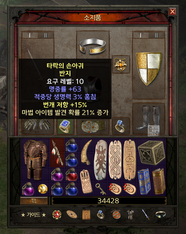 아래 사진에서 볼 수 있는 아이템은 지옥 공략을 모두 마쳤을 때의 아이템 구성이다.