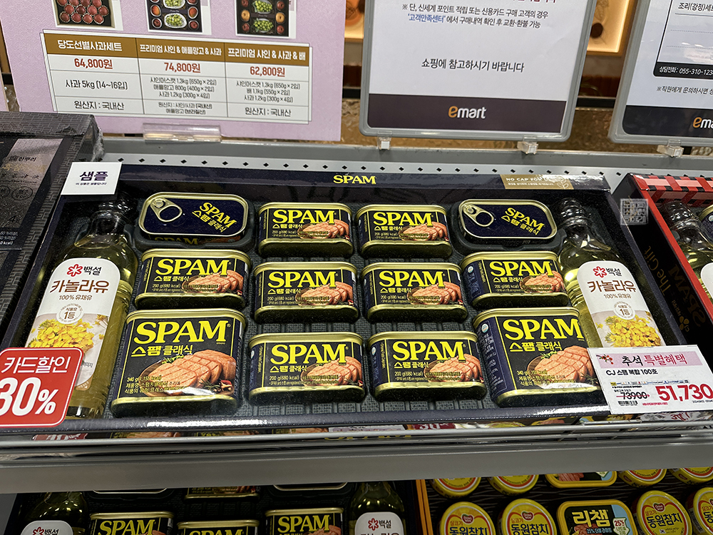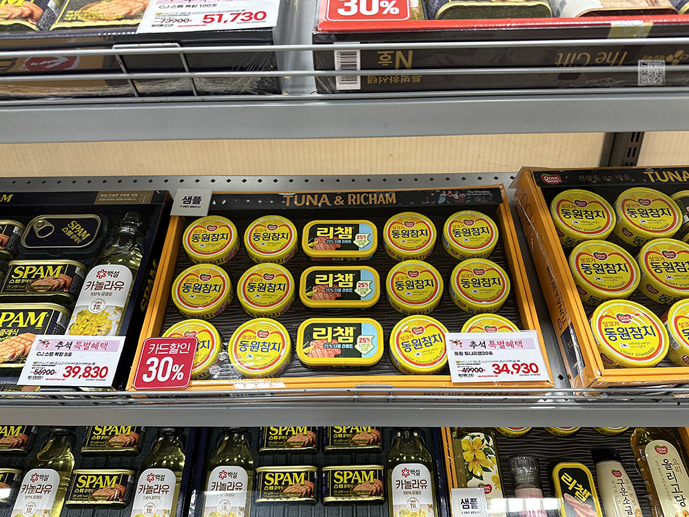 일반적으로 우리 서민이 받고 싶은 선물 세트 1위는 역시 집에서 반찬으로 요긴하게 활용할 수 있는 동원참치 세트 혹은 CJ 스팸 세트, 리챔 세트 등이라고 생각한다. 이러한 선물세트는 집에서 메인 반찬으로 활용하는 것만 아니라 3~4천 원 저렴하게 당근에 올리면 당근에서 잘 거래되는 선물세트이기 때문에 용돈벌이로도 나름 괜찮다.