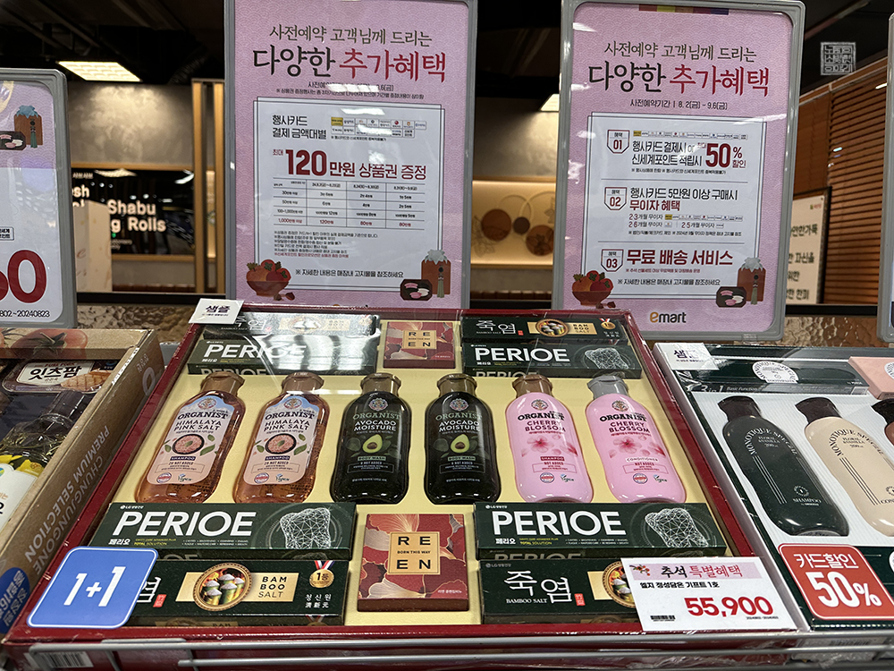 내가 장을 보기 위해서 자주 찾는 김해 이마트는 지난 8월 2일(금)부터 추석 이마트 선물세트의 사전 예약을 받고 있었다. 추석 선물세트는 추석이 가까울 때 구매하는 것보다 사전 예약 구매를 한다면 훨씬 더 저렴하게 구매할 수 있다. 조금 늦게 추석 선물세트를 구매하는 사람들이 쿠팡에서 그나마 저렴하게 구매할 수 있다.