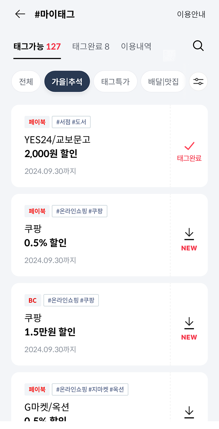 BC카드 페이북 마이태그 9월 할인 챙기세요