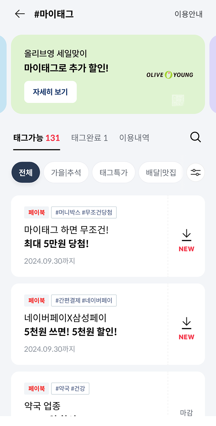 9월이 시작된 이후 BC카드 사용자들이 이용하는 페이북 어플에서는 새롭게 마이태그 할인이 열렸다. 나는 페이북 마이태그를 해야 한다는 사실을 9월 1일이 아니라 9월 2일에 깨닫고 하루 늦게 페이북 어플에 접속했는데, 역시나 다를까 넷플릭스/유튜브 프리미엄 최대 1,000원 할인 마이태그는 진작에 마감이 되어 있었다.