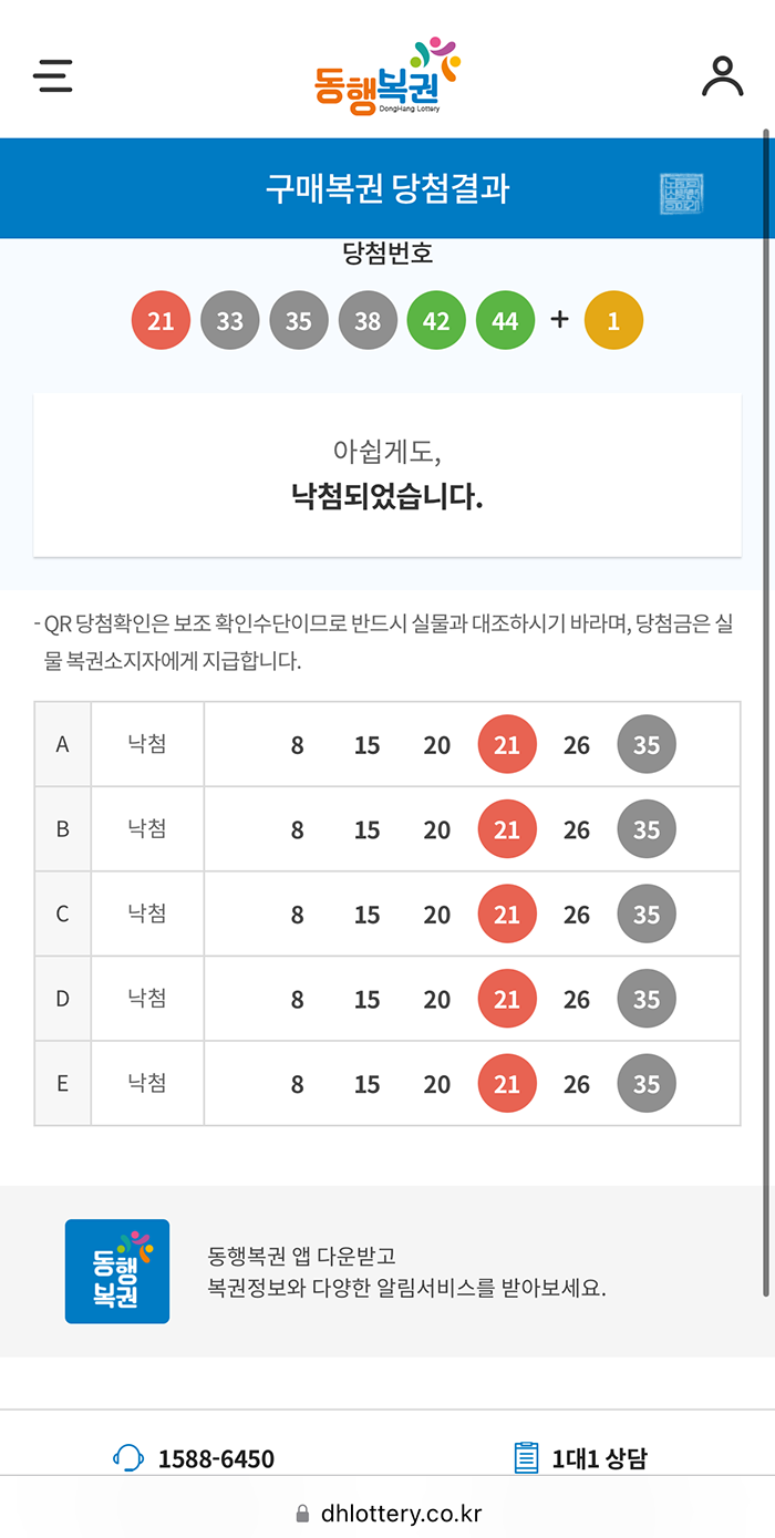 나도 로또 복권을 구매할 때마다 수동으로 똑같은 번호 조합 5개를 기입한 로또 종이 한 개를 내밀면서 "자동 5천 원도 함께 주세요."라고 구매를 하고 있지만, 아쉽게도 아직 내가 기입했던 수동은 4등 5만 원에 당첨되게 해 준 것을 제외한다면 당첨된 적이 없다. 이번에도 함께 구매했던 자동 5천 원에서 번호 3개가 맞아 5등에 당첨되었다.