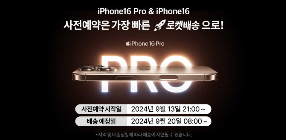 아마 쿠팡에서 구매한다면 조금 더 저렴하게 자급게 폰을 구매할 수 있을 테니, 9월 13일에 막을 올릴 아이폰 16 시리즈 예약 구매 페이지를 지켜보도록 하자. 쿠팡을 기준으로 아이폰 16, 아이폰 16 프로 시리즈 사전 예약은 9월 13일(금) 오후 9시부터 시작되고, 배송은 9월 20일(금) 오전 8시에 된다고 한다. 이번 추석 보너스는 아이폰인가?