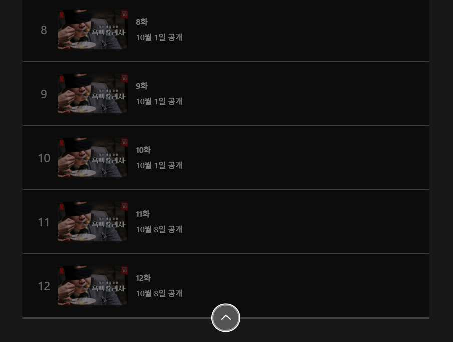 그냥 맛있게 먹는 수준이 아니라 놀랍도록 많이, 그리고 맛있게 먹는 이 먹방러들을 상대로 어떤 규칙을 바탕으로 살아남은 셰프들이 자신만의 요리를 보여줄 것인지 궁금하다. 다음 이야기를 볼 수 있는 <흑백 요리사 요리 계급 전쟁 8화>는 내 생일이기도 한 오는 10월 1일을 맞아 공개되는데… 진짜 재미있을 것 같다.