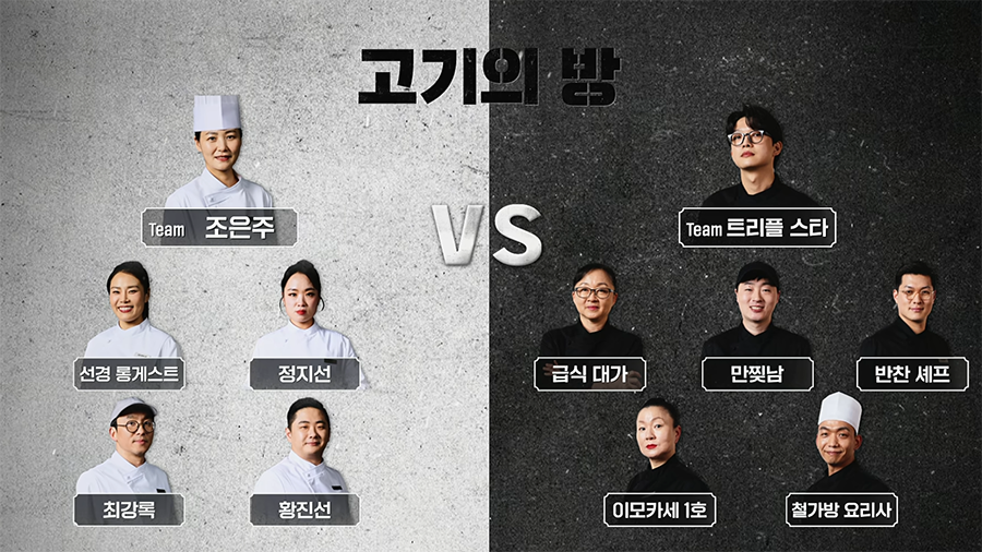 <흑백 요리사 요리 계급 전쟁 6화>로 이어지는 첫 번째 흑백 요리사 팀전은 고기의 방을 선택한 백요리사 팀 조은주와 흑요리사 팀 트리플스타의 대결이 펼쳐졌다. 팀 트리플스타의 리더를 맡은 트리플스타 셰프는 1화부터 높은 존재감을 보여주었고, 승부욕이 강하고, 가슴은 뜨거워도 머리는 차가운 리더에 알맞은 인물이었다.