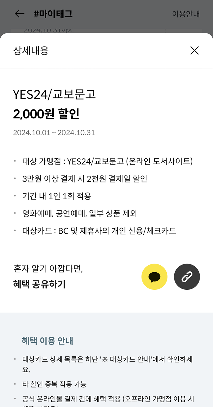 BC카드 페이북 마이태그 10월 할인 정보 정리