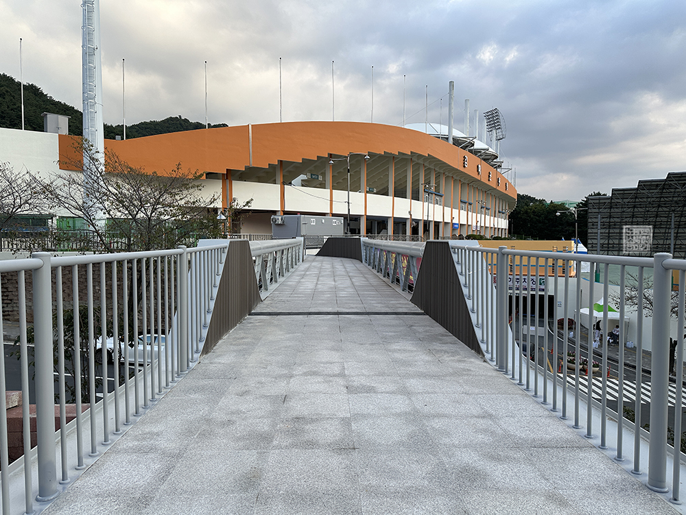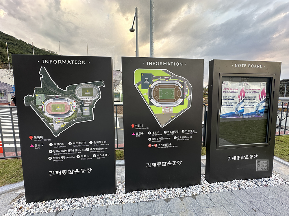 안내판을 본다면 김해 종합 운동장은 총 네 개의 출입구를 갖고 있었다. 메인 출입구와 함께 북측 출입구, 동측 출입구, 남측 출입구로 나누어져 있었는데… 구 김해 운동장과 김해시 체육회 사무실이 있는 건물에서 김해 종합 운동장으로 향하는 곳은 남측 출입구였다. 오, 이렇게 보니 김해 종합 운동장의 규모를 대충 가늠해 볼 수 있었다.