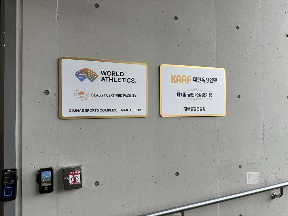 선수단 출입구 2번을 통해 김해 종합 운동장 내부로 들어간다면 위 사진을 통해 볼 수 있는 벽면을 만날 수 있다. 벽면에는 김해 종합 운동장 지상 1층 안내도(현 위치 기준)와 함께 전국체전에 참여하는 사람들을 상징하는 그림…이라고 말하기보다 전시물에 가까운 장식물이 아주 화려하게 한쪽 벽면을 채우고 있었다.