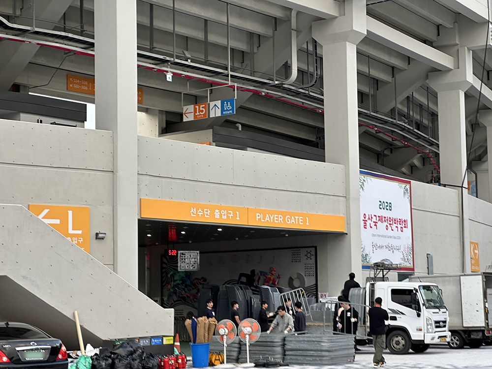 전국체전 개회식이 열리는 운동장을 짧게 둘러본 이후 길게 김해 종합 운동장 한 바퀴를 돌아보는 데에는 시간이 너무 걸릴 것 같아서 그냥 바로 나왔다. 당일(8일)을 기준으로 아직 여러 준비가 한창 진행되고 있다 보니 천천히 운동장을 둘러보면서 사진을 찍고 있으면 일하시는 분들이 종종 흠칫하시기 때문에 민폐가 될 것 같았다.