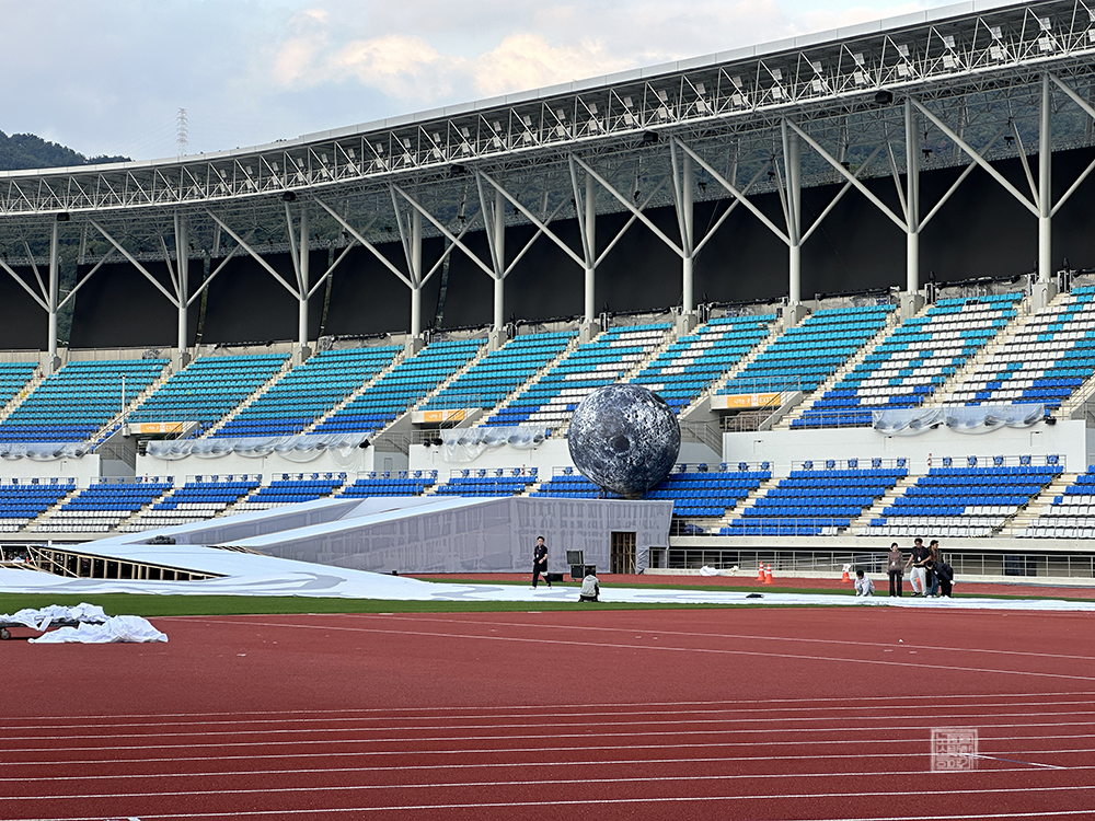 내가 김해 종합 운동장을 찾았던 정확한 날짜는 10월 8일 오후 6시경이었기 때문에 아직 준비가 덜 된 모습이었다. 전국체전 개회식을 위한 여러 부속 무대 설치를 서둘러서 하는 모습을 볼 수 있었는데, 과연 이번 제105회 전국체전 개회식에서는 어떤 특별한 이벤트가 마련되어 있을지 궁금했다. 전국 규모로 열리는 전국 체전이니까!