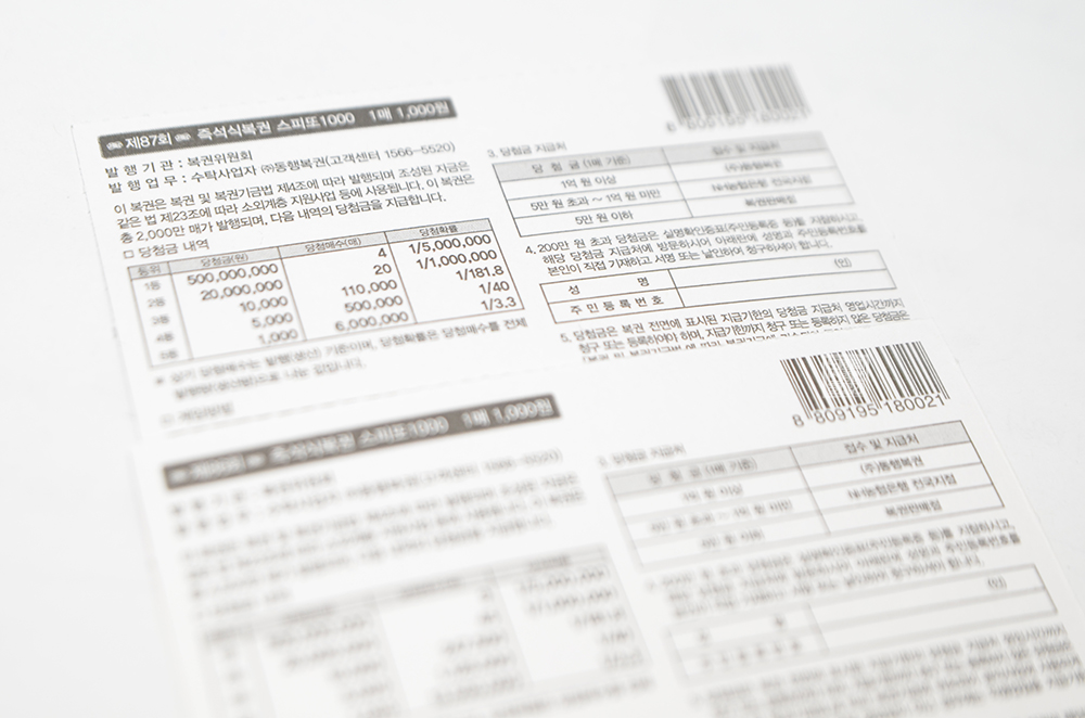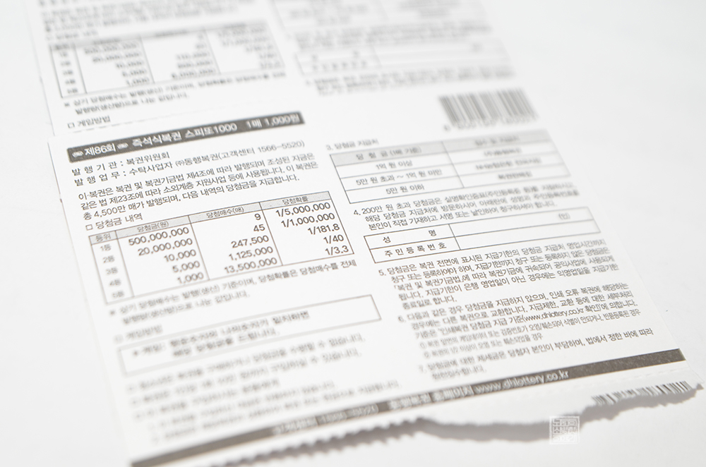 그런데 스피또1000 87회에는 복권 디자인이 아니라 우리가 생각지 못한 부분에서 많은 게 바뀌었다. 바로, 1등과 2등 당첨 복권의 수가 절반으로 줄어들었다.