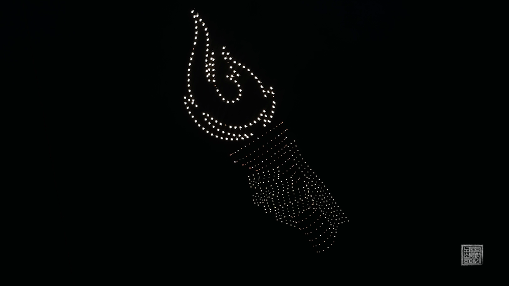 성화 점화식은 지난 제105회 전국체전과 마찬가지로 드론을 활용한 형태로 우주에서 성화에 불을 붙이는 형태로 진행되었다. 凸 형태로 제작된 무대 스크린에서는 우주로 날아가는 로켓이 아주 화려하게 빛났고, 하늘에서는 수백 대의 드론이 성화를 든 커다란 손을 만들면서 성화에 불을 붙이는 연출을 해 주었다.