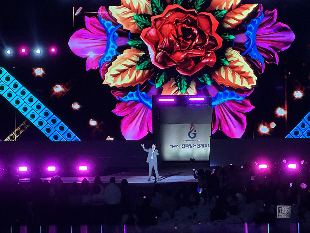 그렇게 공식 일정을 마친 이후 제44회 전국 장애인 체육대회 개회식을 위한 축하 공연이 진행되었다. 무대 위에 가장 먼저 올랐던 가수는 축제 가수로 유명한 노라조 팀으로, 분위기를 띄우는 가수로 유명한 노라조답게 흥을 돋우는 데에 최고였다. 관객석에 앉아 다음 가수를 기다리던 아주머니들도 아주 신나 하셨다.