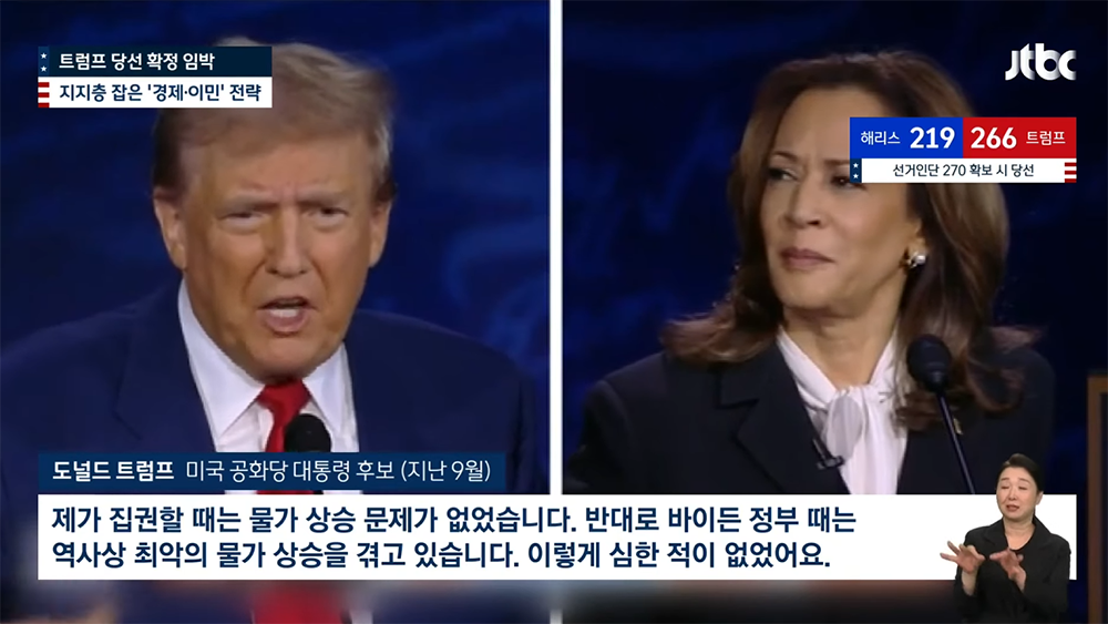 투표가 시작되면서 구체적인 윤곽이 드러날 때까지는 많은 사람과 많은 언론이 해리스와 트럼프 두 사람이 모두 치열하게 접전을 벌일 것으로 생각했다. 하지만 트럼프의 압도적인 우위가 드러나는 데에는 많은 시간이 걸리지 않았다. 모든 지역의 뚜껑을 열어볼 필요 없이 경합주에서 모두 트럼프가 크게 우세했었다.