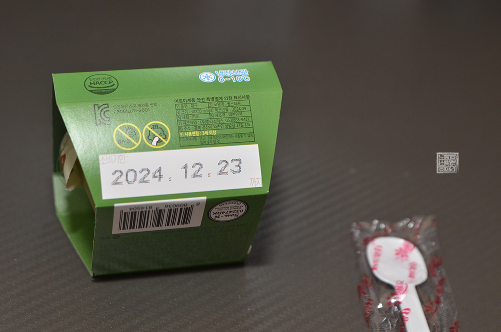 하지만 우리가 자세한 원재료를 읽어 보더라도 '음, 정제수가 이렇게 들어가고, 말차(녹차:제주산)가 들어가고 하면서 일일이 따지는 사람은 잘 없을 것으로 생각한다. 보통 우리가 성분 표기를 볼 때 보는 건 소비기한과 함께 보관 방법인데, 리락쿠마 말차 푸딩은 냉장 보관(0~10℃)을 권장하는 제품이니 참고할 수 있도록 하자.