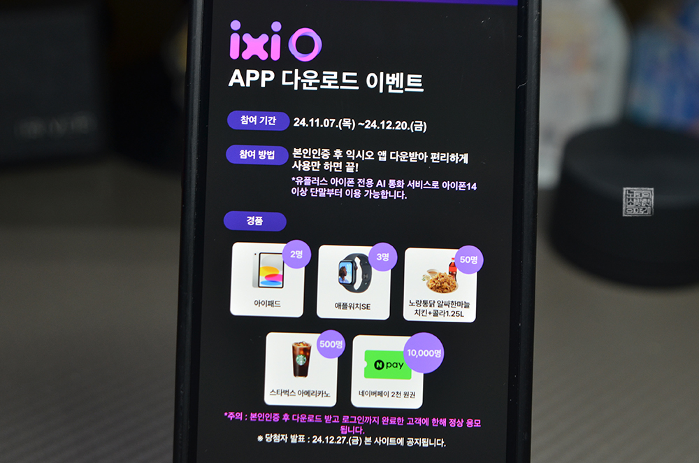 그리고 출석 이벤트를 참여하다가 배너를 통해서 새로운 이벤트 하나를 더 보게 되었다. 바로, 유플러스에서 출시한 나만의 AI 에이전트 익시오 이벤트로, 이 익시오는 아이폰용 유플러스 AI 통화 서비스(무료)로 제공되면서 특별한 네 가지 기능― 통화 녹음 및 요약, AI 대신 전화받기, 보이는 전화, 보이스피싱 탐지를 제공했다.