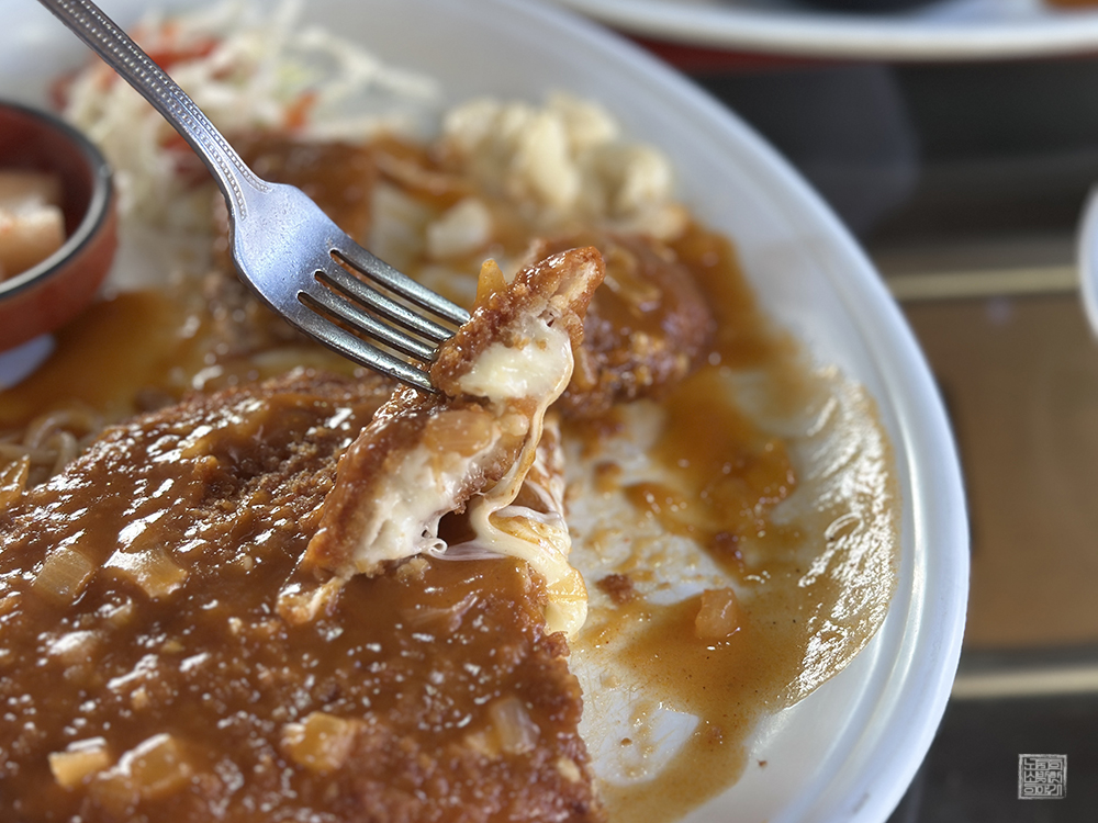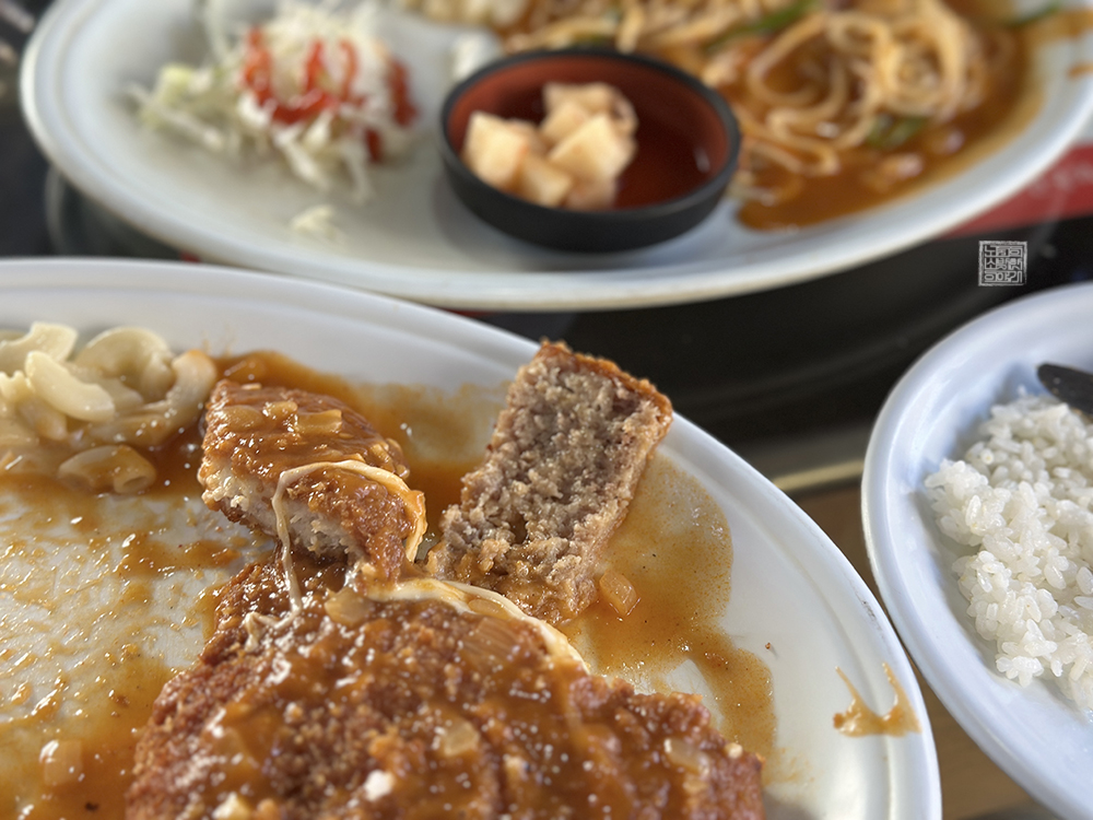 이 돈까스 반 덩어리는 우리가 잘 아는 등심 돈까스가 아니라 피카츄 돈까스라고 말할 수 있는 다진 고기가 내부에 들어가 있는 튀겨진 돈까스였다. 설마 2025년이 되어서 피카츄 돈까스를 다시 먹어보게 될 줄은 미처 상상도 못했다. 이런 돈까스이기 때문에 2025년에도 여전히 돈까스가 4천 원에 판매될 수 있는 것이다.