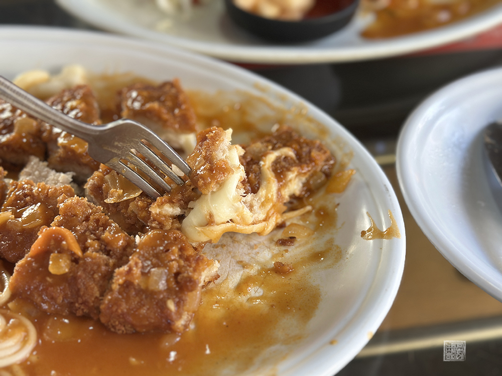 하지만 앞서 말했다시피 돈까스는 딱 그 가격에 어울리는 퀄리티로, 동생이 일반 돈까스는 '피카츄 돈까스랑 똑같다.'라고 말해서 무슨 뜻인지 궁금했는데 딱 그 맛이었다. 치즈 돈까스를 곱배기로 주문할 경우에는 치즈 돈까스 반 덩어리가 추가되는 게 아니라 위 사진에서 볼 수 있는 일반 돈까스 반 덩어리가 추가된다.