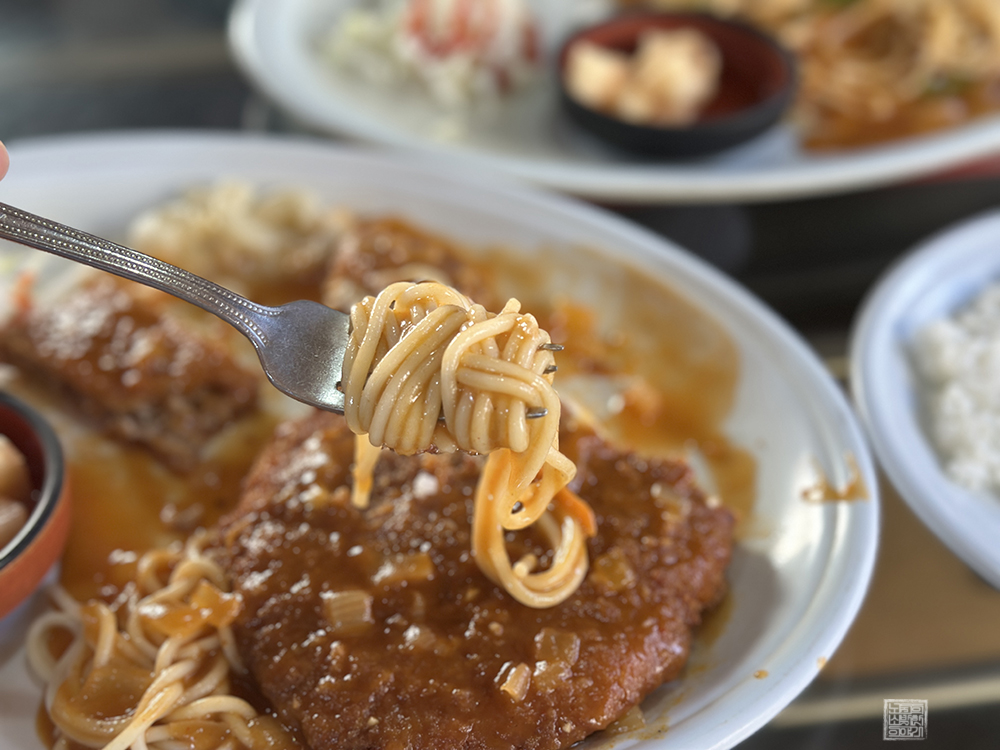 보통 이런 옛날 경약식 돈까스와 치즈 돈까스는 풍부한 고기와 바삭한 식감과 촉촉한 고기를 즐기는 게 아니라 소스의 맛으로 먹는다고 생각한다. 티발 돈까스의 집이 자랑하는 치즈 돈까스의 소스는 딱 우리가 어릴 적 맛있게 먹은 돈까스 소스 맛이었고, 곁들여 먹었던 스파게티도 살짝 매콤함이 감돌아서 맛있게 먹을 수 있었다.