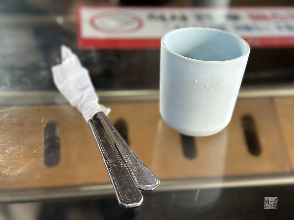 앞서 내가 오늘알 조금 예민한 사람은 방문하기가 꺼려진다고 말했던 이유는 식기가 조금 오래되었고, 물컵도 조금 오래된 물컵을 계속 사용하다 보니 사진에서 볼 수 있는 형태였기 때문이다. 솔직히 말해서 나도 이 물컵은 이용하기가 꺼려질 정도로 물컵만큼은 새 물컵으로 바꿔서 식기 건조기에 넣어서 사용했으면 싶었다.