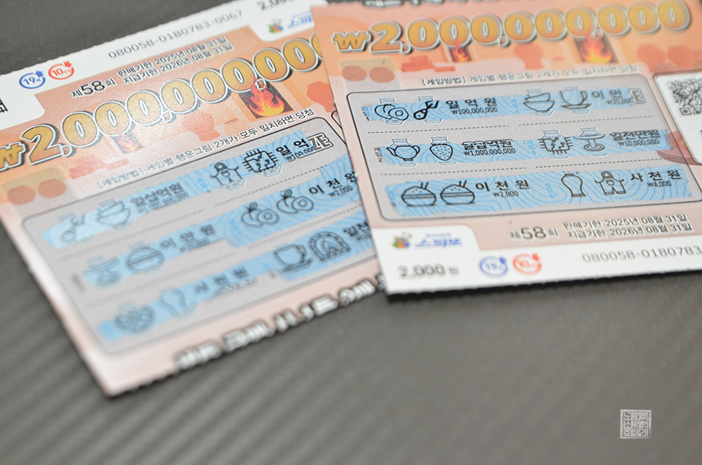 아쉽게도 이번에 구매한 스피또2000 58회 8장은 고작 2천 원 2장이 당첨되는 데에 그치고 말았다. 진짜 천만 원은 아니라고 해도 다시 복권을 10장 정도 구매할 수 있는 4등 2만 원이라고 당첨이 되기를 바랐는데, 현실은 "안 해 줘. 돌아가."라고 복권이 말하는 듯한 분위기로 8장을 구매했던 복권이 2장으로 줄어들고 말았다.