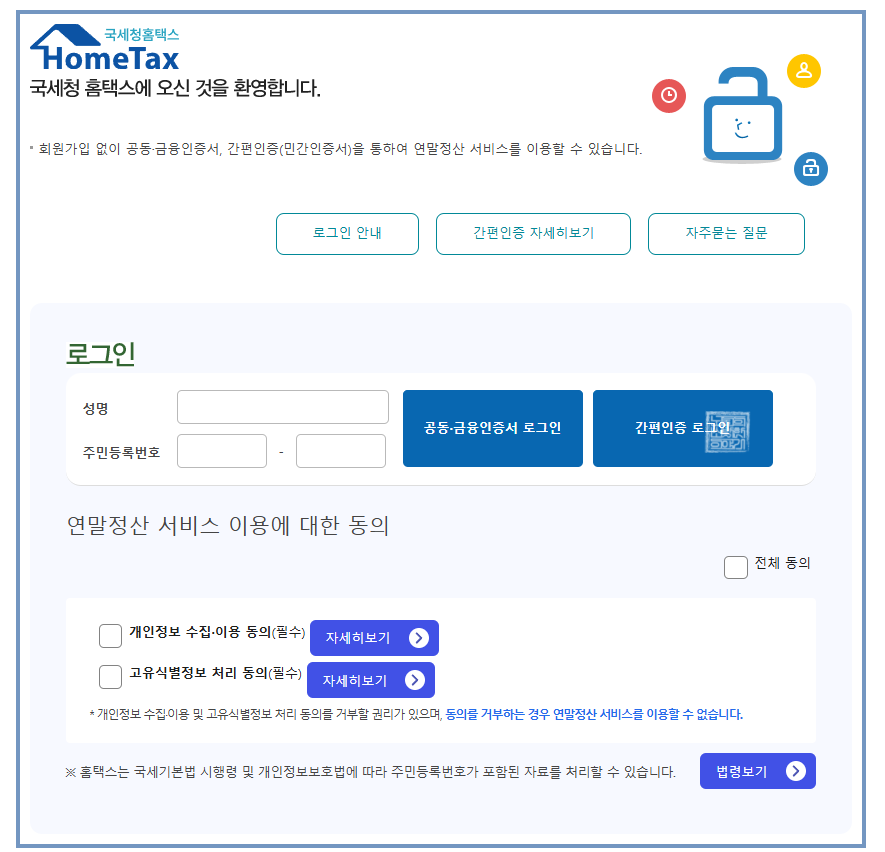 홈택스 홈페이지에서 연말 정산 간소화 서비스 이용하기