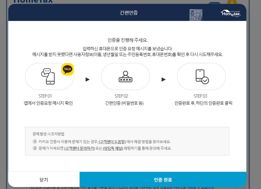 홈택스(손택스)에 로그인하기 위해서는 기본적으로 공동·금융인증서를 통한 로그인이 필요하다. 하지만 요즘은 꼭 구 공동 인증서에 해당하는 공동 인증서나 은행을 통해 다운받을 필요가 있는 금융인증서가 아니라 카카오톡과 네이버 등 간편 인증 로그인이 가능해 편하게 이용할 수 있다. 나는 카카오톡 로그인을 이용했다.