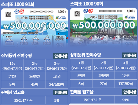 스피또1000 91회 판매 시작 90회 잔여수량 비교