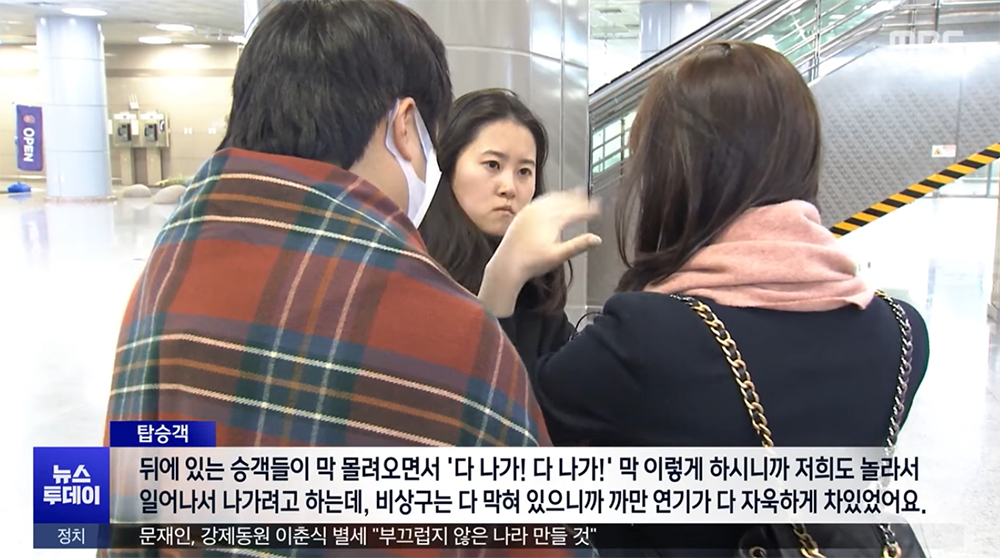 아무래도 당시 꼬리칸 근처에 있던 승무원은 상황 파악이 제대로 되지 않아 머릿속으로 매뉴얼을 찾아 헤맸던 듯하다. 승무원이 제지해도 승객들이 "불이야!"라고 외치면서 뒤에서부터 도망쳐 나오기 시작했고, 연기가 빠르게 퍼지기 시작하자 승무원들이 움직이기 전에 먼저 승객들이 비상구를 열고 비상 슬라이드로 탈출을 했다고 한다.