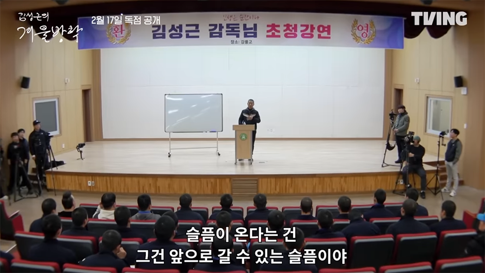 그 이외에도 강릉고를 찾은 김성근 감독이 어린 선수들과 관계자들에게 강의를 하는 장면, 차를 타고 가다가 유희관과 신재영에게 차에서 내리라고 한 이후 뛰어가게 하는 장면, 카메라를 잡은 스태프에게 체조를 시키는 장면 등을 티빙에서 공개한 <김성근의 겨울방학> 예고편에서 볼 수 있었다. 도대체 어떤 이야기가 여기에 담겼을까?