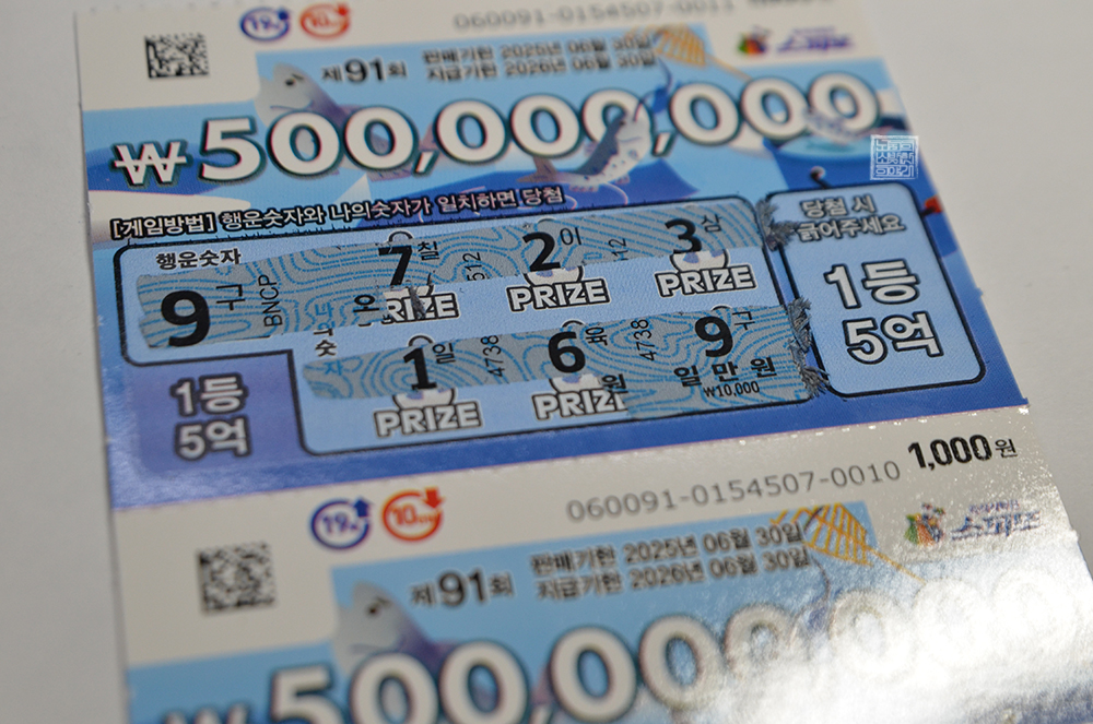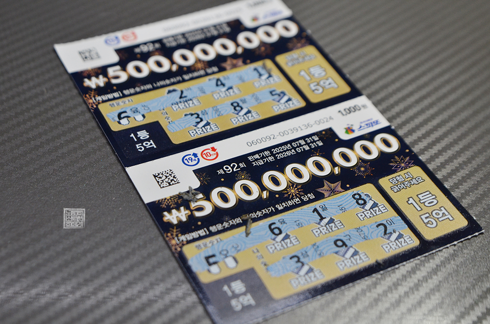 지난주에 당첨된 로또 복권(5천 원X2장)과 함께 당근으로 중고 물품을 판매한 돈으로 다시 복권을 사기 위해 복권 판매점을 찾았다. 내 기억으로 아직 스피또1000 91회 1등과 2등이 제법 남아 있을 텐데… 벌써 스피또1000 92회 복권이 판매되고 있었다. 평소대로 스피또1000 91회에 올인하려다 92회에도 한번 구매해 보기로 했다.