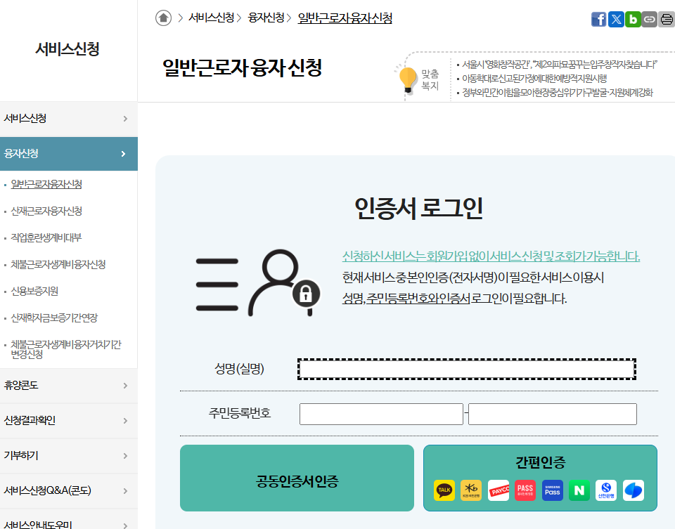 일반 근로자 융자 신청 서비스 종류