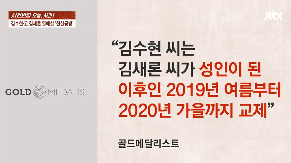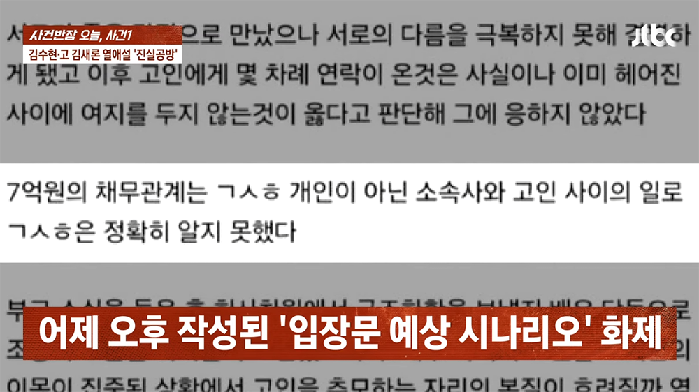 고 김새론 배우와 김수현 배우 두 사람의 연인 관계 이야기가 나왔을 때 소속사 측은 처음에 연인이었던 적이 없다고 주장했다. 하지만 사건이 계속해서 일파만파 커지는 데다 김수현 배우에 대한 하차 요구와 진실을 요구하는 목소리가 높아지자 결국에는 두 사람이 연인이었다는 사실을 뒤늦게 인정하고 밝혔다는 것이다.