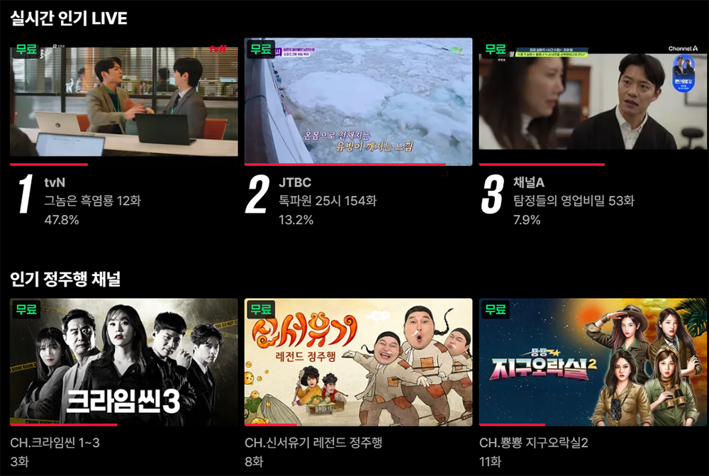 무료 시청도 가능한 티빙