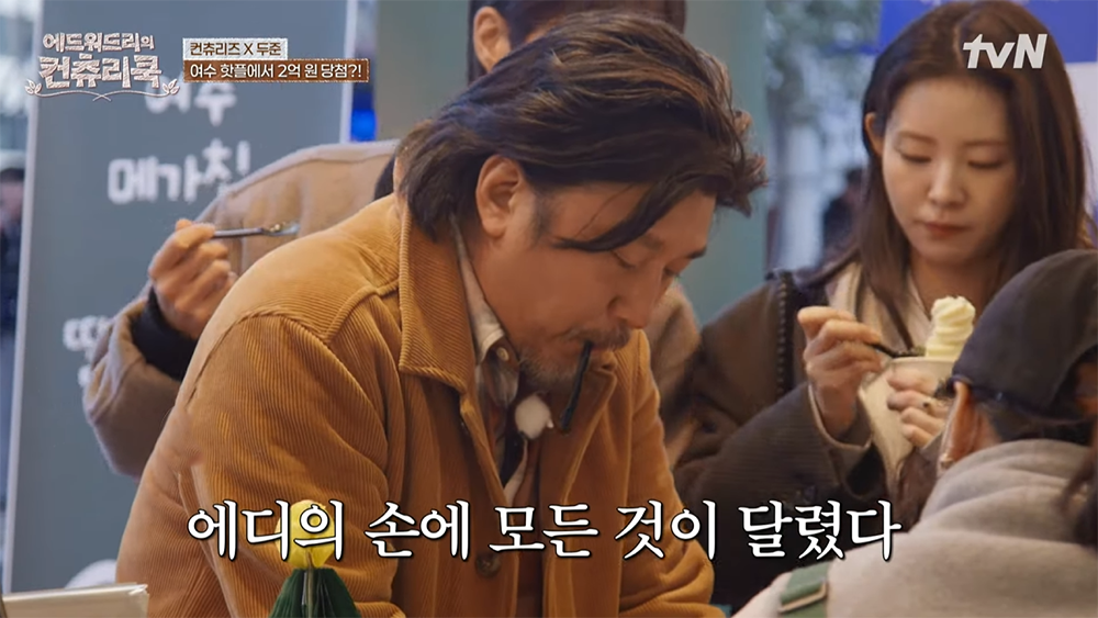 해당 영상을 보면 쑥 아이스크림을 먹고자 했던 에드워드 리와 함께 다른 출연진들이 아이스크림을 구매한 덕분에 네이버 영수증 리뷰에 참여할 수 있는 기회가 있었다. 영수증 리뷰에 참여한 사람에게 가게 사장님은 작은 디저트를 주는 게 아니라 개업 이벤트 삼아서 즉석 복권 스피또500 45회를 2장을 증정했다.