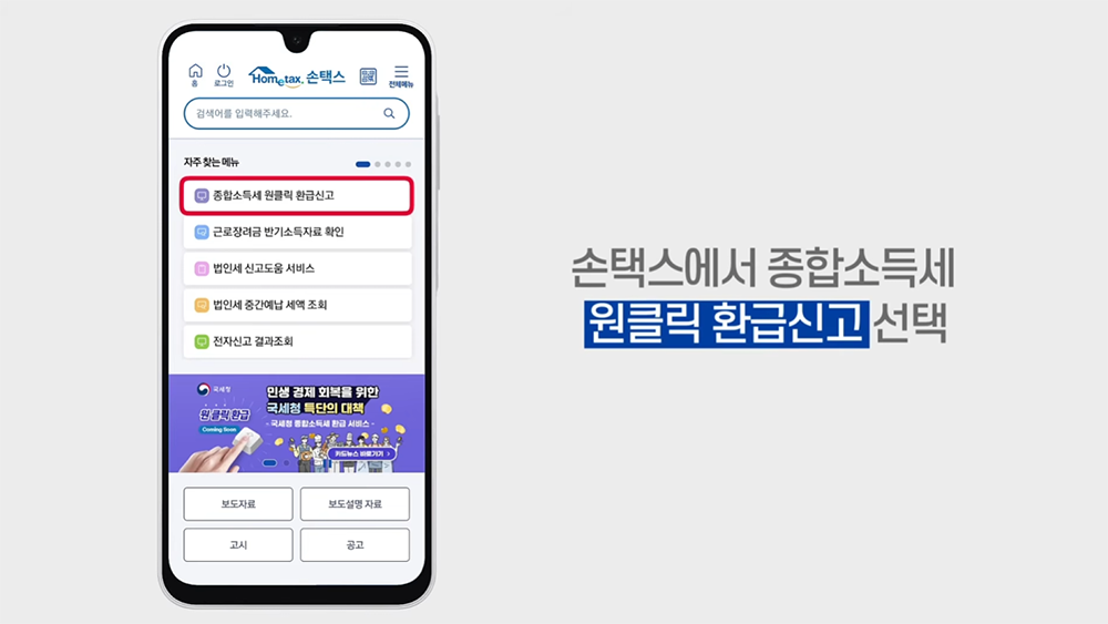 홈택스 손택스 종합소득세 원클릭 환급 신고 하는 방법