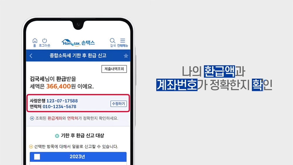 홈택스 손택스 종합소득세 원클릭 환급 신고 하는 방법