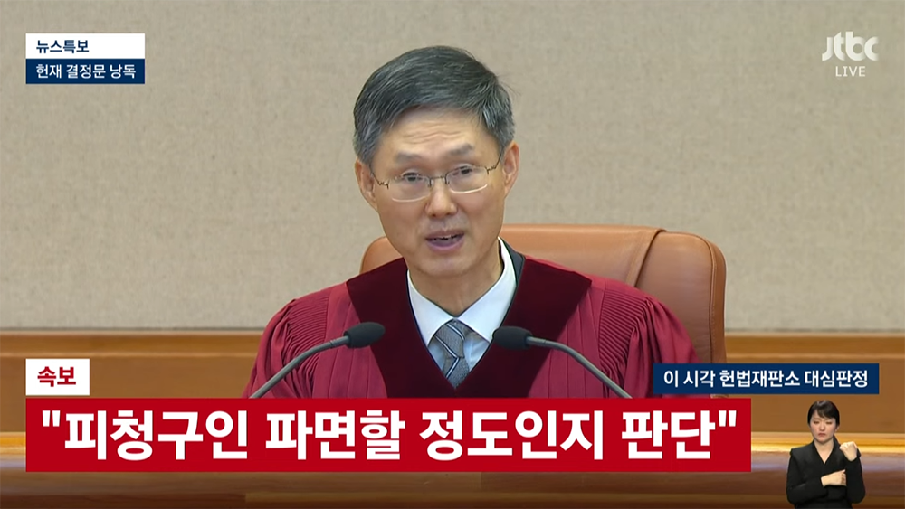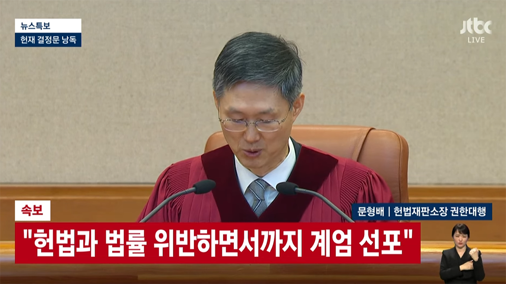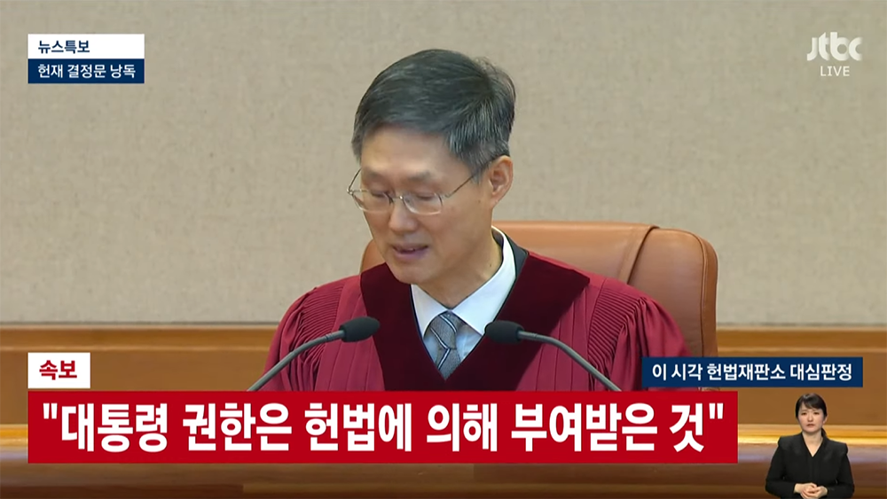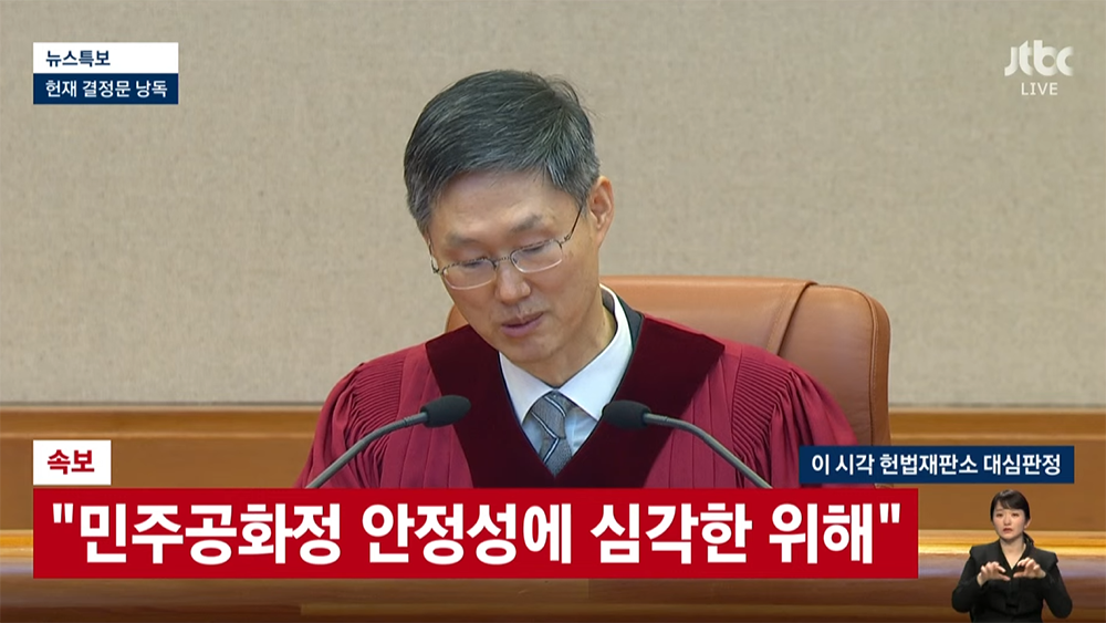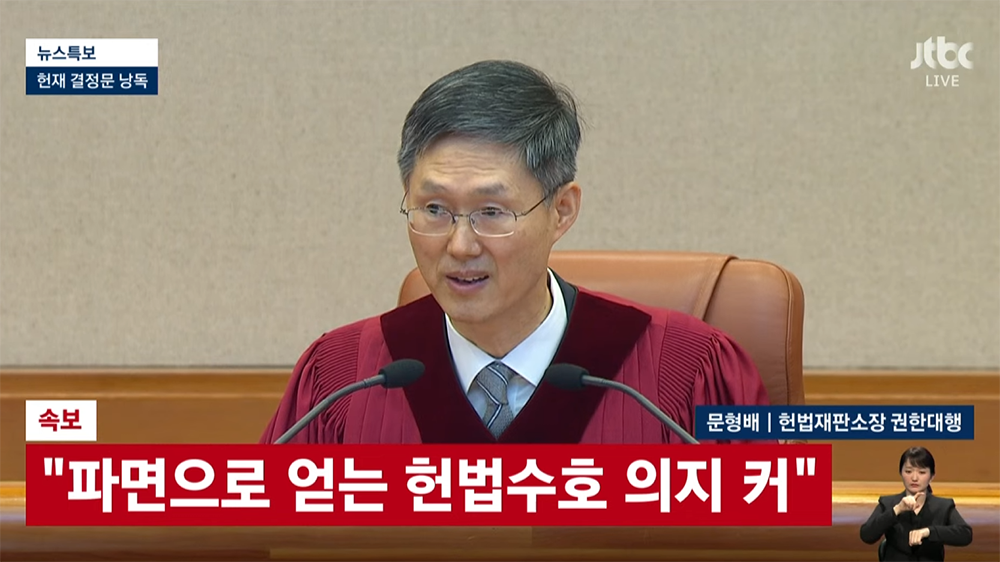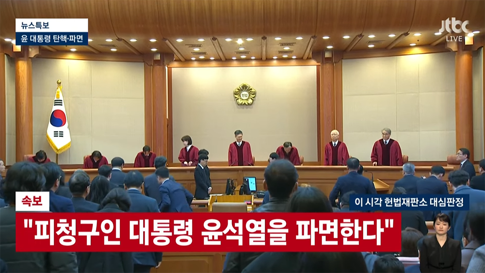 8인 만장일치 주문 피청구인 대통령 윤석열을 파면한다