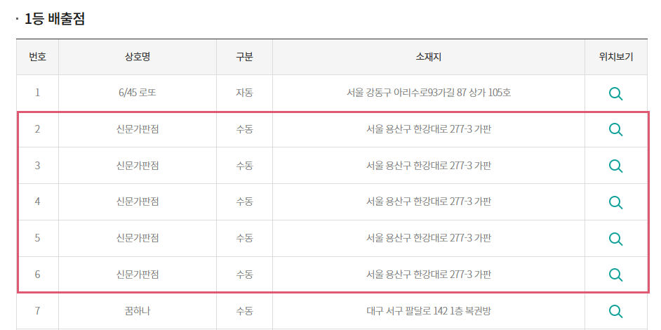하지만 이번 로또 1166회 당첨번호 조합을 맞춘 수동 중복 당첨자의 사례를 통해 알 수 있듯이 당첨이 되는 사람은 어디서 어떻게 구매해도 당첨이 된다. 굳이 복권 명당을 찾는다고 해서 당첨될 확률이 높은 건 아니지만, 사람의 기분이라는 게 있다 보니 혹시나 하는 마음으로 복권 판매점을 찾는 것이다. 여러분 생각은 어떤가?