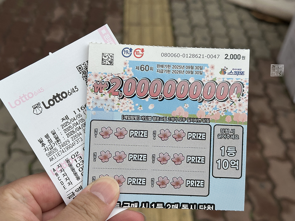 밑바닥 인생은 늘 밑바닥에서 살아가는 것이 당연하다고 세상이 말하는 건지 몰라도 참 당첨이 쉽지 않다. 그래도 밑바닥 인생을 열심히 살아가면서 복권 당첨이라는 옅은 희망을 품고 살아가는 게 한 줌의 즐거움이라고 생각한다. 애초에 복권을 구매하지 않으면 복권에 당첨되는 일도 없기에, 꾸준히 복권을 구매하는 것도 제법 필요했다.