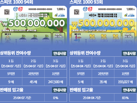 벌써 스피또1000 94회 판매 시작 스피또1000 93회 1등 잔여수량은