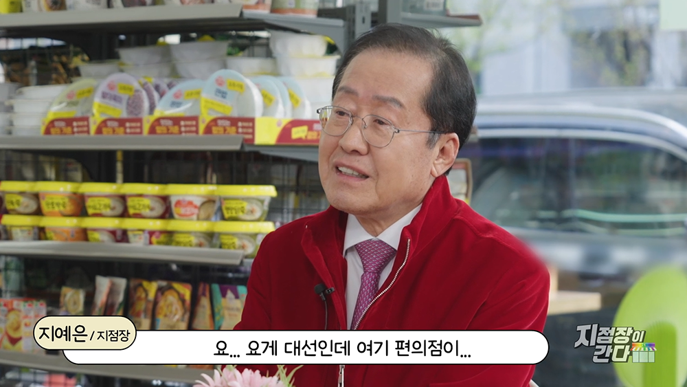 그리고 <SNL 코리아>에서 재미있게 볼 수 있는 코너 중 하나는 정치를 풍자하는 코너만 아니라 정치인과 인터뷰를 진행하는 코너다. 지난 <SNL코리아 시즌7 2회>에서는 홍준표 대선 후보가 등장해 편의점을 대선이라고 가장하고 이야기를 나누는 모습을 볼 수 있었는데, 처음에는 이걸 이해 못 한 홍준표의 모습이 얼마나 웃겼는지 모른다.