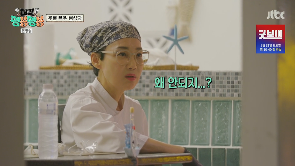 처음 주방에서 그녀를 마주했을 때 유승호가 보여주는 모습은 <대결! 팽봉팽봉 4화>에서 볼 수 있는 하이라이트 중 하나였다고 생각한다. 열심히 영업을 마치고 숙소로 돌아가 맥주 한두 캔을 마시면서 심신을 위로하던 상황에서 그녀를 만났다 보니 어쩔 줄 몰랐다. 그녀가 등장했을 때 미소가 피어난 유승호의 모습에서 행복이 느껴졌다.