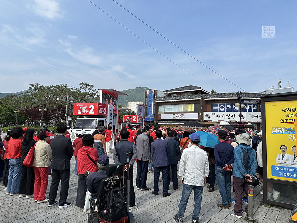 김해 수릉원 국민의힘 김문수 지지 갑을 합동유세 현장 가보니
