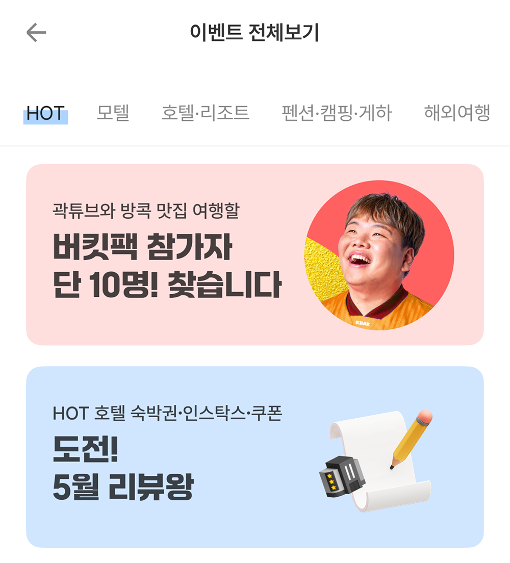 여기어때 버킷팩05 곽튜브 여행 응모하기